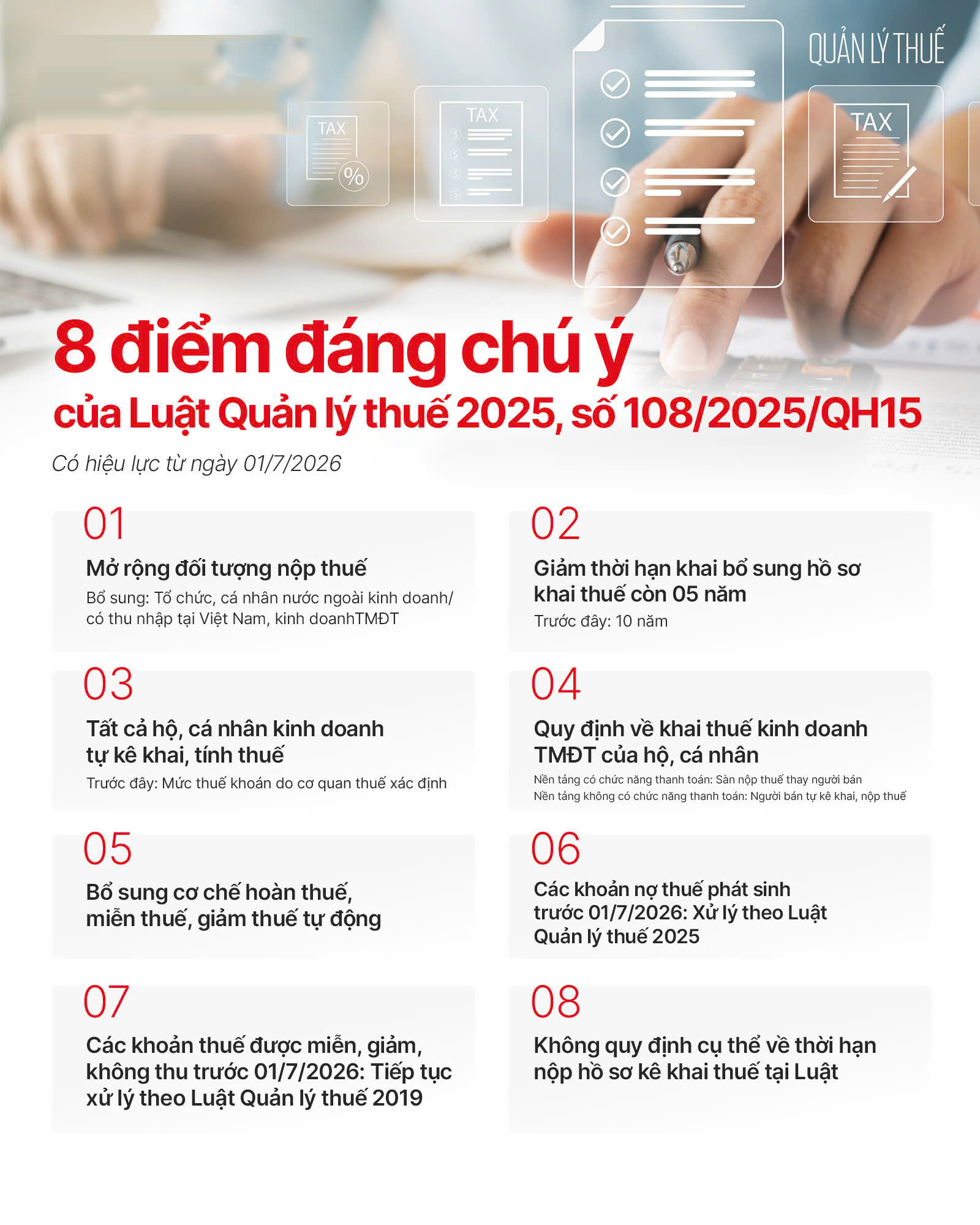 Đây là nhóm thay đổi mạnh nhất trong Luật Quản lý thuế 2025.